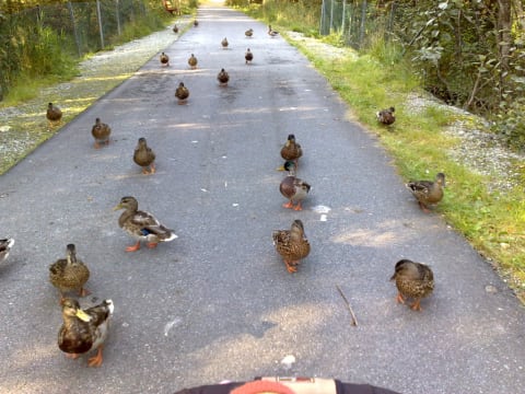My daughter and I had fed them a bit further down the road. My daughter cried when we left so I thought I should walk backwards a bit. Then they followed us like this. It was awesome. 🙂
