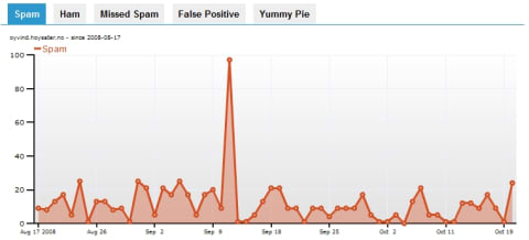 For et par dager siden kom det en oppdatering til Akismet antispam plugin, nå har vi fått statistikk på dashbordet. Jeg er kjempeglad i statistikk og grafer så jeg fortet meg å teste ut oppdateringen på test-bloggen min. Det oppsto noen problemer, jeg tror det var pga index.php i plugin-katalogen, den rotet til en god del. Det hjalp å omdøpe index.php til index.html.