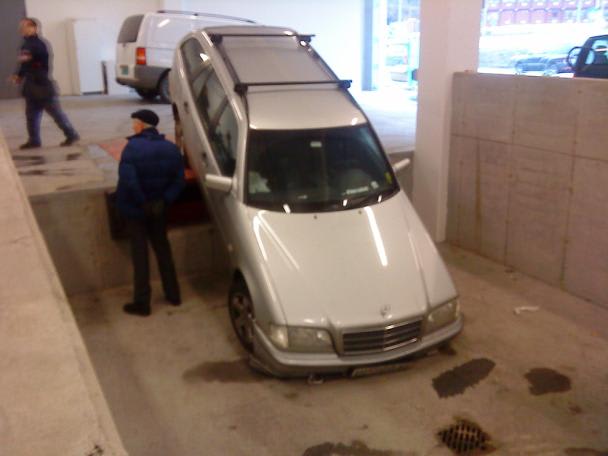 A 78 year old man was unfortunate to drive off a ramp in a parking house. Locals say it just had to happened some day. People are probably going to blame his age but if you look at the photo, it could happend the best. I mean, its weird that it didn’t happend before. Locals are calling it «the jump».
