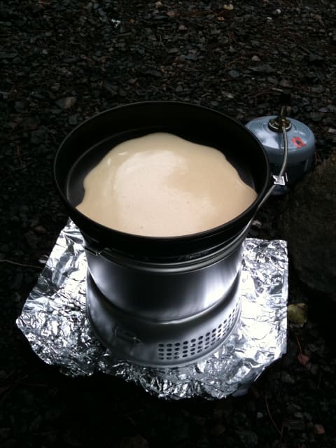 Vi gikk både opp og ned Fløifjellet i dag, det var litt tungt med sportsvognen men all trim er god trim, minstemann gikk innimellom for å strekke beina sine. Vi så frem til å teste det nye stormkjøkkenet vårt, pannekakerøret hadde vi med på flaske.
