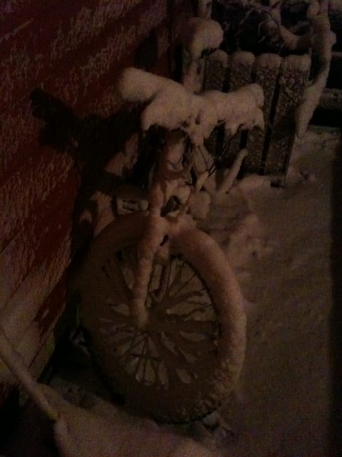 Jeg tok disse etter en liten snøstorm, stakkars sykkelen min.. Men i forhold til blant annet Sverige er vi heldige.