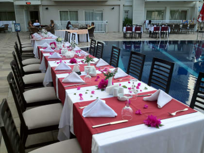 Barna koste seg i et velholdt basseng, her forbereder de til tyrkisk aften.