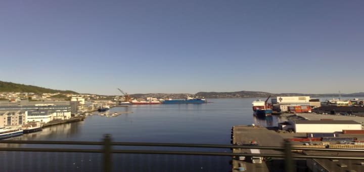 A beautiful morning in Bergen today, I took the bus and had the chance to snap some shots. This is on the bridge over Puddefjorden, not easy to take from within a bus but...
